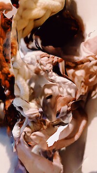 Next to the digitality of our meeting and crocheting sessions, which initiated our intermedial approach to the craft, we further explored the transfer of bodily gestures to the realm of the digital through 3D scanning applications. Each of us scanned their crocheted object, moving it from physical to digital space, where we intermeshed and wove them together; creating a unified digital meta-textile. The final outcome of our online collaboration manifested in a split screen video work, showing the act of parallel crocheting and the digital meshwork of our interwoven object in a looped rotation; highlighting the dialogue between the analog and the digital as well as the inter-relational aspect of creating in a community.