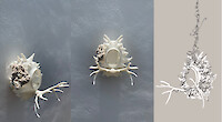 To encourage extensive usage of our designs, we incorporated versatile mounting and hanging options - with ‘feet’ that can be stuck to multiple surfaces with the use of adhesive pads, and hoops which can be suspended from wall mounted brackets, trellises and tree branches. The feeders are designed with a good amount of air-ventilation and drainage. With our 3D SLA printed prototypes, we aim to magnify the intricacy of diatomic design to provide correspondingly thoughtful and diverse forms.